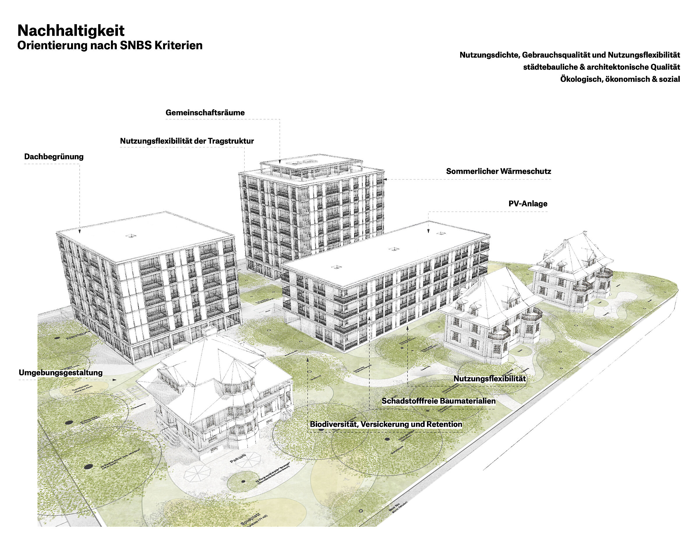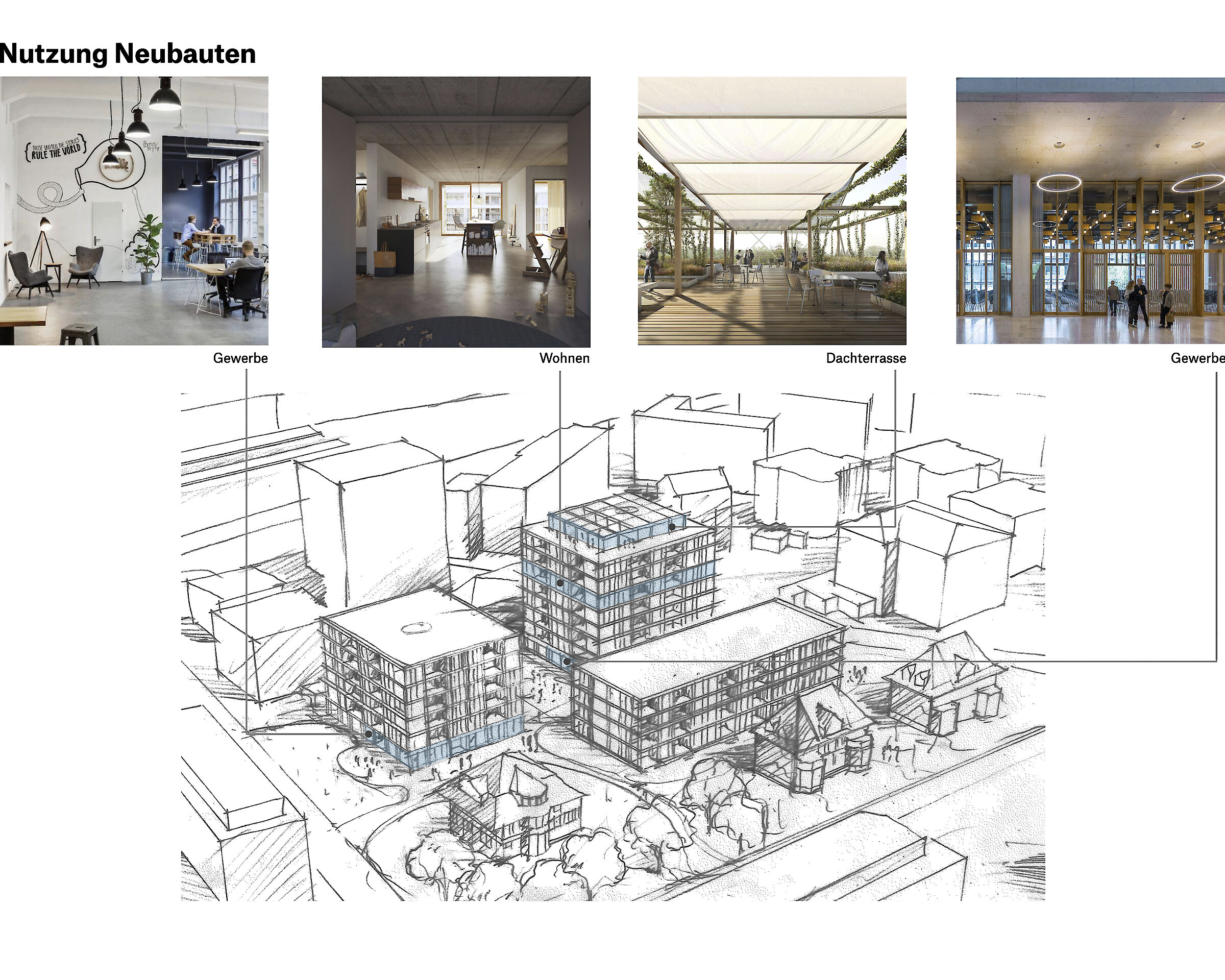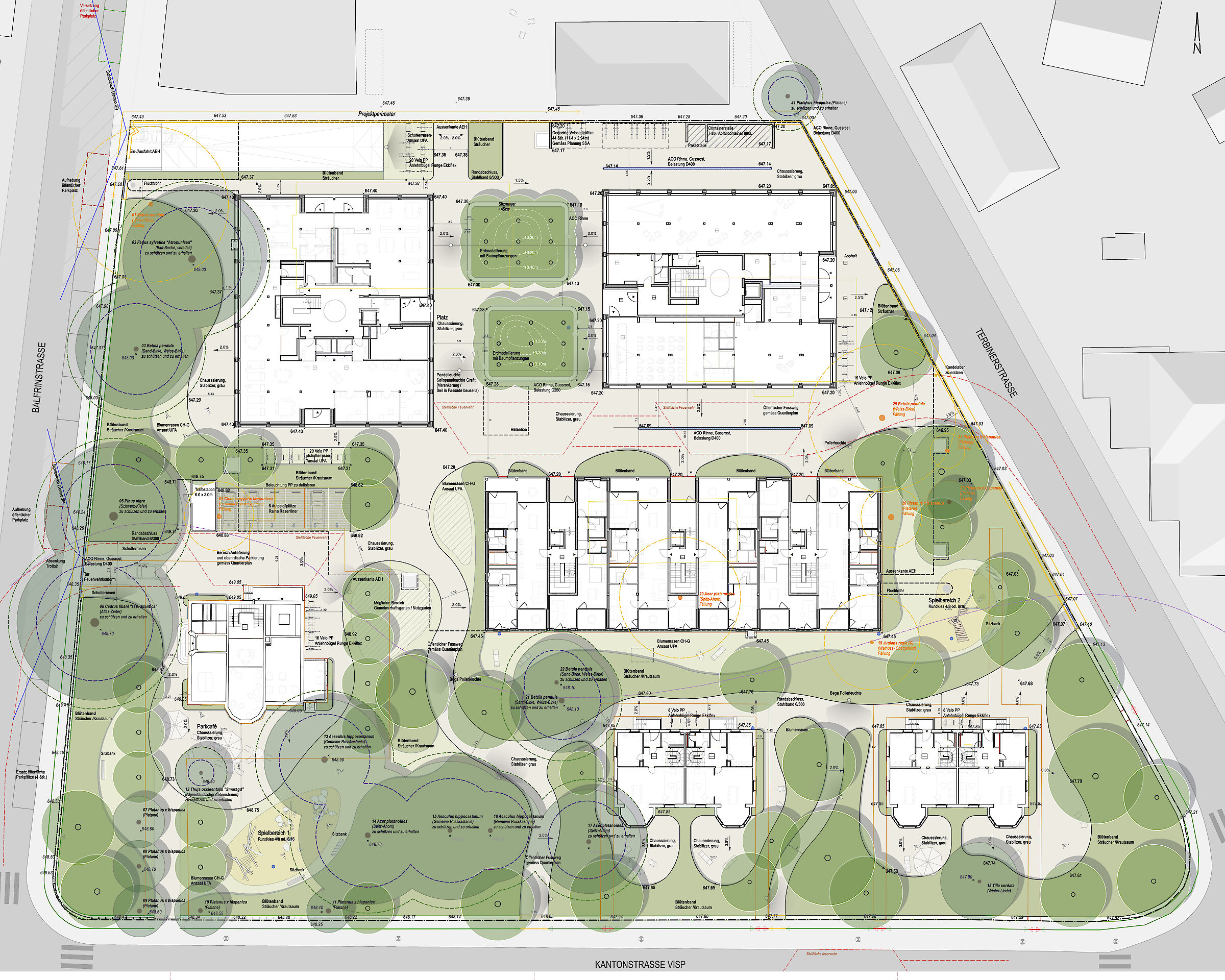 Aufbauend auf dem von SSA 2018 überarbeiteten Quartierplan soll ein Mischquartier mit Wohnen und Arbeiten in den Erdgeschossen entstehen, welches über das Areal ausstrahlt und zu einem attraktiven Ort der Begegnung in Visp werden wird. Die historisch wertvollen Bauten entlang der Kantonsstrasse, die Direktorenvilla sowie die beiden Vizedirektorenvillen werden in das Gesamtkonzept einbezogen und mit neuen Nutzungen versehen.