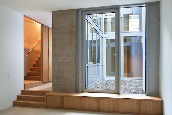Die bestehende Druckerei im ersten Obergeschoss bleibt erhalten und wird mit einem Aufbau aus vier Obergeschossen sowie einem Attikageschoss ergänzt. Neben der Erweiterung der Druckerei entstehen in den Obergeschossen insgesamt 20 Mietwohnungen.